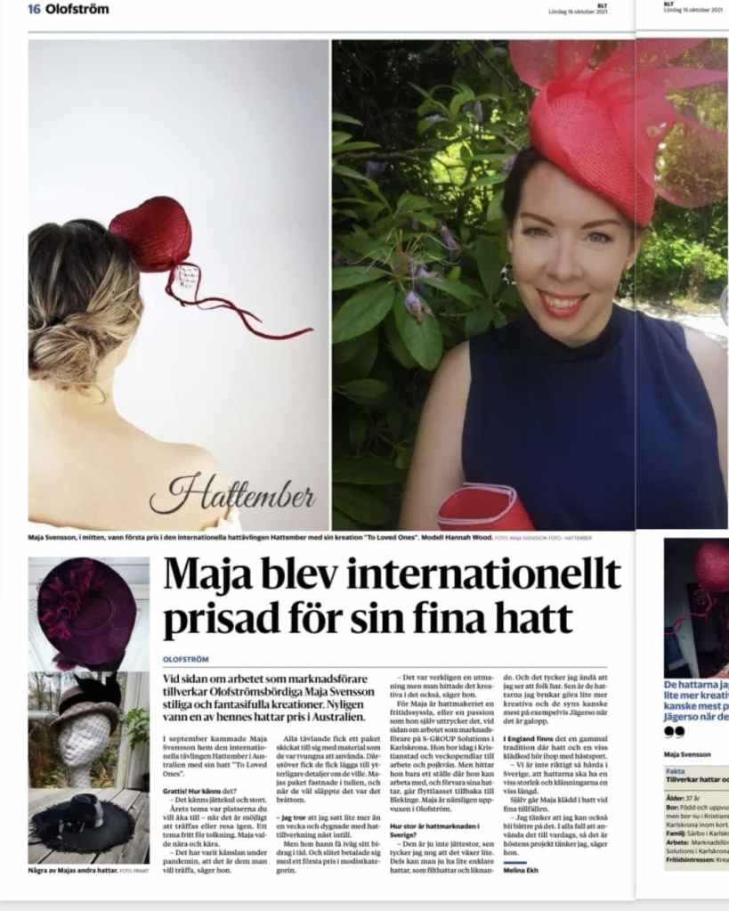 THERE IS A HAT FOR EVERYONE – Feature article in Lokaltidningen Kristianstad & Hässleholm 2020.